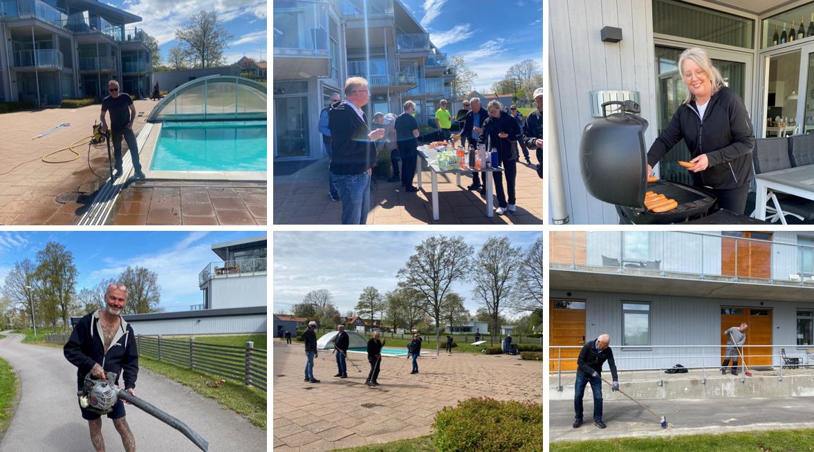 Idag samlades 25-talet medlemmar för vårstädning, korvgrillning och gemenskap. Vilken dag det blev – poolen förbereddes för sommaren, blommor planterades, rabatter rensades, det sopades och fixades fint i alla hörn. Resultatet konstaterade vi blev fantastiskt!